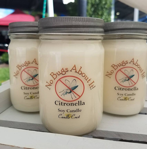 Your favorite citronella candles, “No Bugs About It” are back for the Summer season!