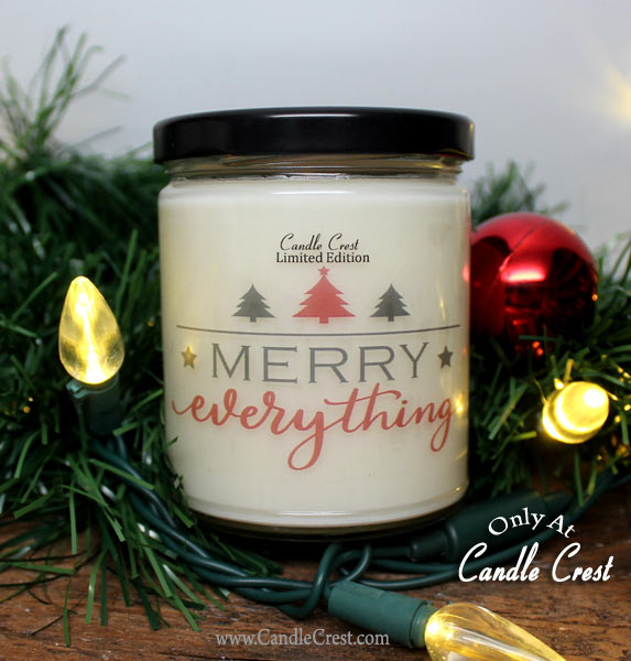 Merry Everything says it all! The holidays should be a festive time for everyone. Scented with our ever so popular Fir Needle. A cozy and comforting fragrance which offers warm wood tones of fresh cut Frasier fir trees. This candle would make a great gift too!