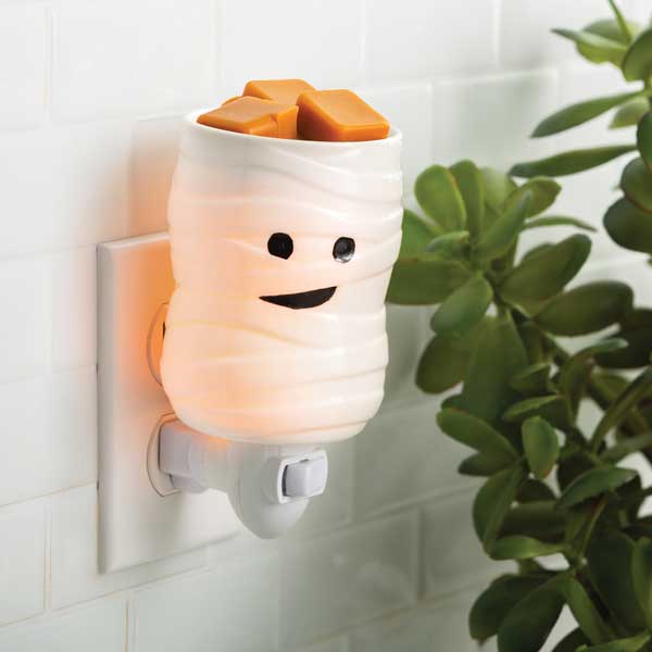 The perfect addition to your Fall décor! – A happy mummy in white porcelain with a soft, gentle glow is anything but scary. It truly is gorgeous!