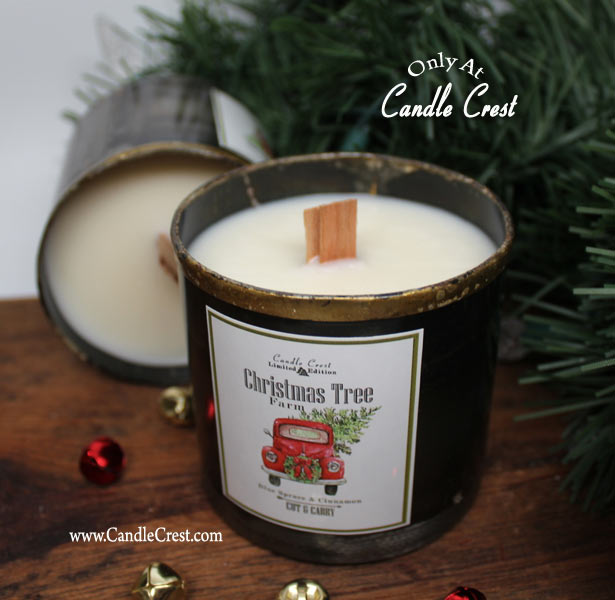 Add a little rustic flare to your home this holiday season with these adorable Wood-wick Tin candles. When lit, (like wood) it will give off the soothing sound of a crackling fire. Scented with our signature blend, Tree Barn. – This incredible holiday fragrance will remind you of your stroll inside the Christmas barn at your local tree farm. Notes of Blue Spruce along with holiday spices such as cinnamon make this unique fragrance a true one of a kind. The festive jar will add a touch of holiday cheer any where in your home and would make a excellent gift as well.